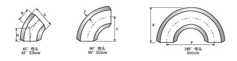 1、常用的彎頭的為長半徑系列,中徑的彎曲半徑為公稱直徑的1.5倍(公稱直徑小于25時為38mm)